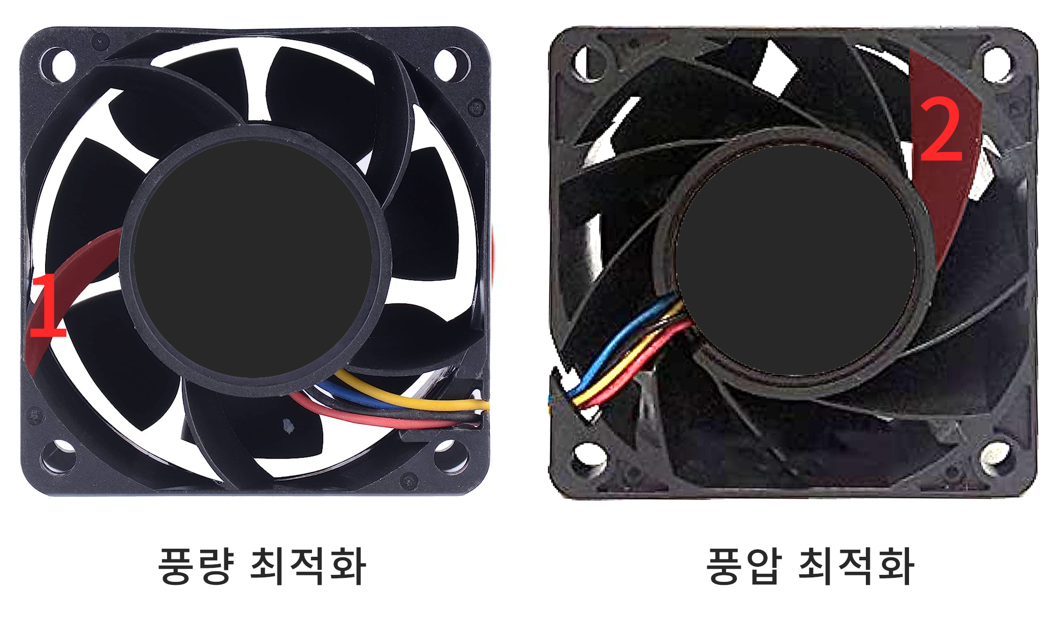 반면 '1'과 같이 지지대가 적고 얇을 수록 풍량이 높아집니다.