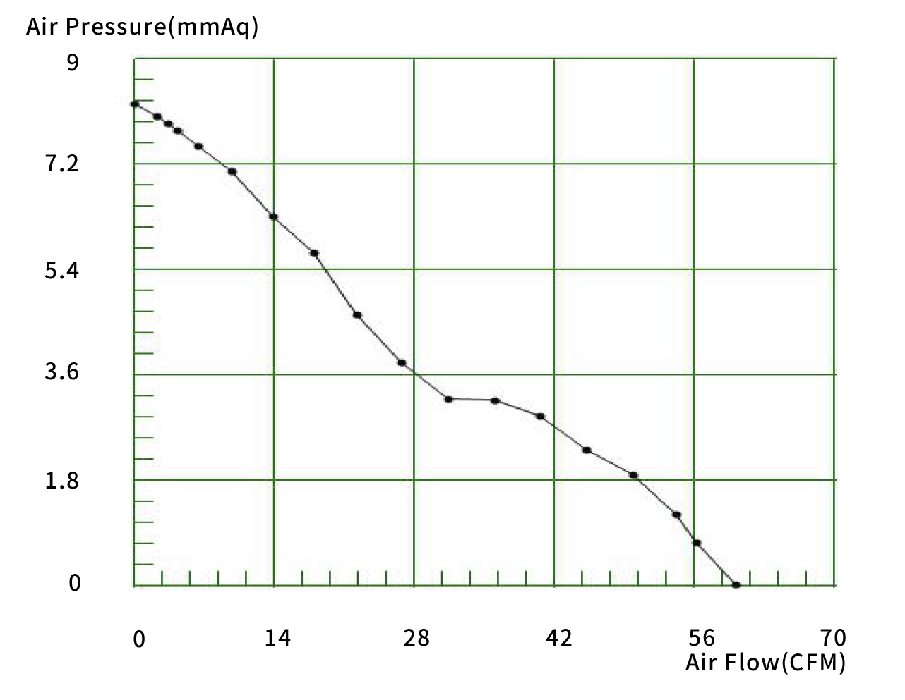 풍량 : 60.13CFM 은 풍압이 0일 때의 수치이고,