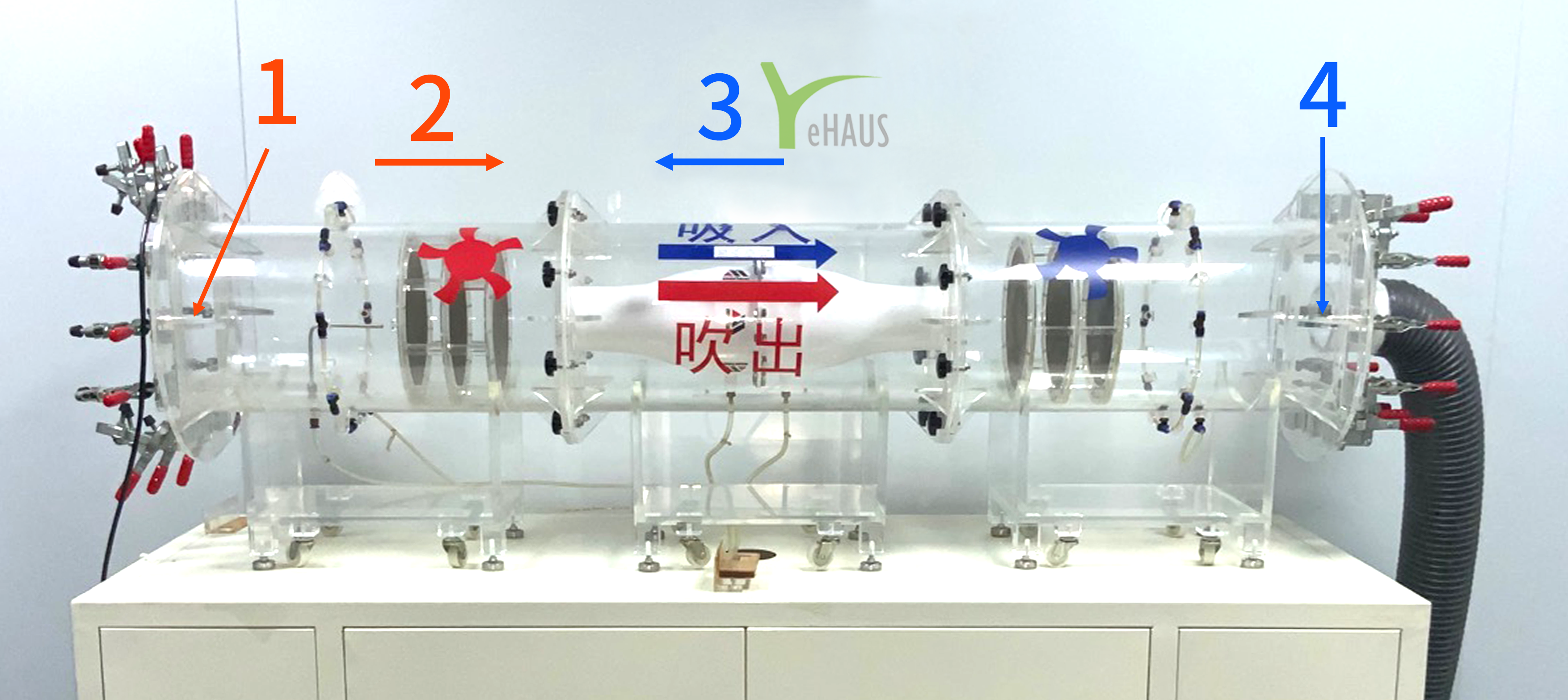 풍동에 1을 통해서 유입되는 기체는 팬을 통한 기체 이외에는 없도록 합니다.